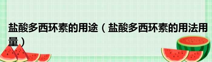 导读 大家好,今天小六子来为大家解答以下的问题,关于盐酸多西环素的用途,盐酸多西环素的用法用量这个很多人还不知道,现在让我们一起来看看吧