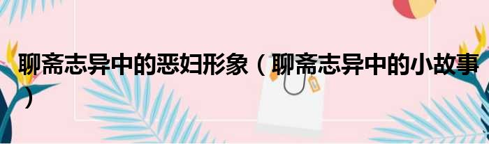 聊斋志异中的恶妇形象(聊斋志异中的小故事)