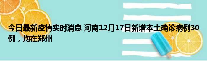 今日最新疫情实时消息 河南12月17日新增本土确诊病例30例,均在郑州