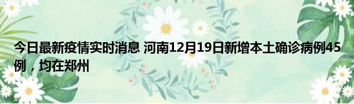 今日最新疫情实时消息 河南12月19日新增本土确诊病例45例,均在郑州