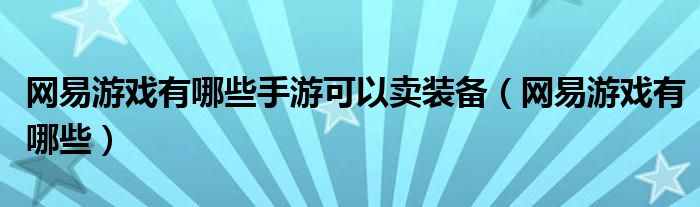 网易游戏有哪些手游可以卖装备(网易游戏有哪些)