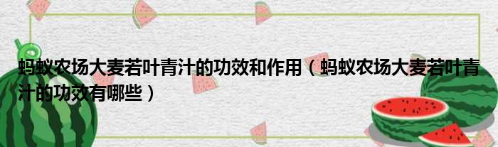 蚂蚁农场大麦若叶青汁的功效和作用(蚂蚁农场大麦若叶青汁的功效有哪些)