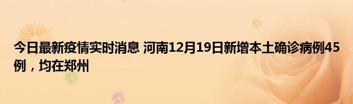 今日最新疫情实时消息 河南12月19日新增本土确诊病例45例,均在郑州