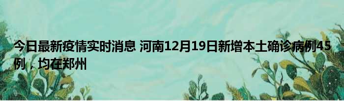 今日最新疫情实时消息 河南12月19日新增本土确诊病例45例,均在郑州
