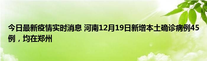今日最新疫情实时消息 河南12月19日新增本土确诊病例45例,均在郑州