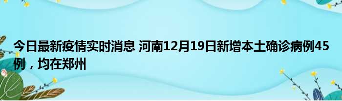 今日最新疫情实时消息 河南12月19日新增本土确诊病例45例,均在郑州