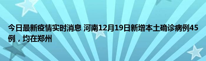 今日最新疫情实时消息 河南12月19日新增本土确诊病例45例,均在郑州
