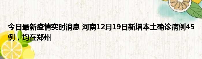 今日最新疫情实时消息 河南12月19日新增本土确诊病例45例,均在郑州