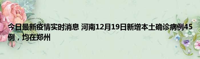 今日最新疫情实时消息 河南12月19日新增本土确诊病例45例,均在郑州