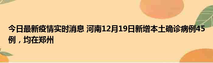 今日最新疫情实时消息 河南12月19日新增本土确诊病例45例,均在郑州