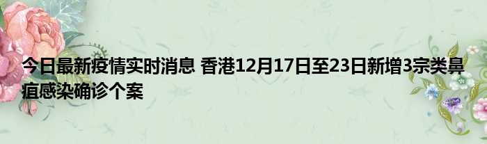 今日最新疫情实时消息 香港12月17日至23日新增3宗类鼻疽感染确诊个案
