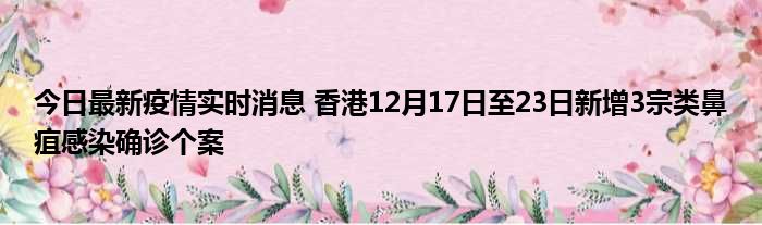 今日最新疫情实时消息 香港12月17日至23日新增3宗类鼻疽感染确诊个案