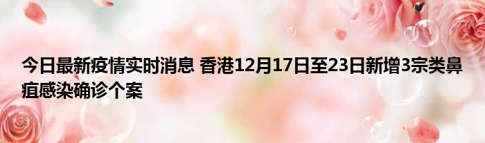 今日最新疫情实时消息 香港12月17日至23日新增3宗类鼻疽感染确诊个案