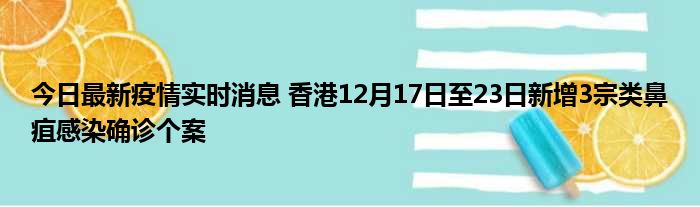 今日最新疫情实时消息 香港12月17日至23日新增3宗类鼻疽感染确诊个案