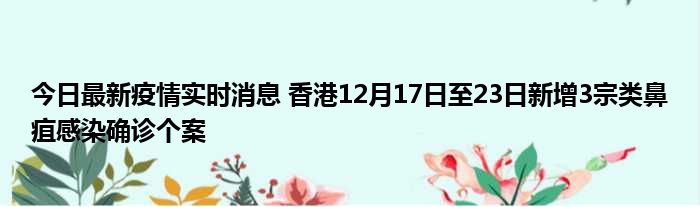 今日最新疫情实时消息 香港12月17日至23日新增3宗类鼻疽感染确诊个案