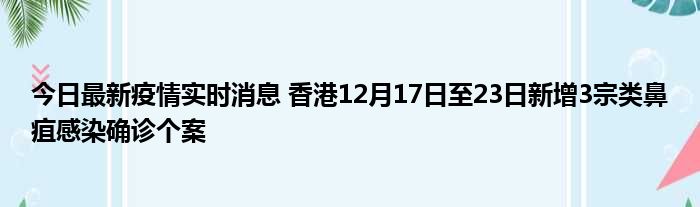 今日最新疫情实时消息 香港12月17日至23日新增3宗类鼻疽感染确诊个案