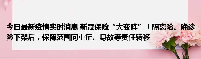 您的位置:首页 >动态频道 > 聚焦疫情 > 今日最新疫情实时消息 新冠保险“大变阵”!隔离险、确诊险下架后,保障范围向重症、身故等责任转移 2023-01-03 18:24:21 • 来源: 导读 免责声明:本文由用户上传,如有侵权请联系删除! 上一篇:今日最新疫情实时消息 香港12月17日至23日新增3宗类鼻疽感染确诊个案 下一篇:今日最新疫情实时消息 新冠保险“大变阵”!隔离险、确诊险下架后,保障范围向重症、身故等责任转移