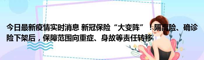 您的位置:首页 >动态频道 > 聚焦疫情 > 今日最新疫情实时消息 新冠保险“大变阵”!隔离险、确诊险下架后,保障范围向重症、身故等责任转移 2023-01-03 18:50:18 • 来源: 导读 免责声明:本文由用户上传,如有侵权请联系删除! 上一篇:今日最新疫情实时消息 下一篇:今日最新疫情实时消息