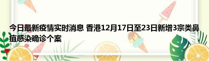 今日最新疫情实时消息 香港12月17日至23日新增3宗类鼻疽感染确诊个案