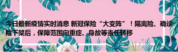 您的位置:首页 >动态频道 > 聚焦疫情 > 今日最新疫情实时消息 新冠保险“大变阵”!隔离险、确诊险下架后,保障范围向重症、身故等责任转移 2023-01-04 03:36:15 • 来源: 导读 免责声明:本文由用户上传,如有侵权请联系删除! 上一篇:今日最新疫情实时消息 香港12月17日至23日新增3宗类鼻疽感染确诊个案 下一篇:今日最新疫情实时消息