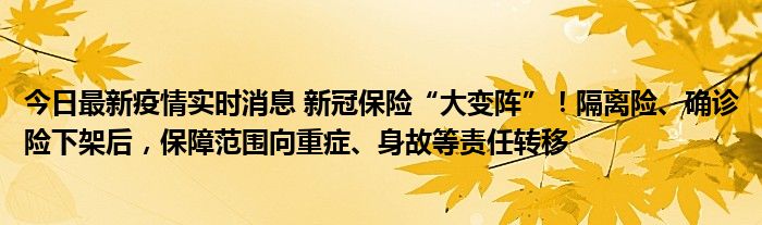 您的位置:首页 >动态频道 > 聚焦疫情 > 今日最新疫情实时消息 新冠保险“大变阵”!隔离险、确诊险下架后,保障范围向重症、身故等责任转移 2023-01-04 12:38:17 • 来源: 导读 免责声明:本文由用户上传,如有侵权请联系删除! 上一篇:今日最新疫情实时消息 香港12月17日至23日新增3宗类鼻疽感染确诊个案 下一篇:今日最新疫情实时消息