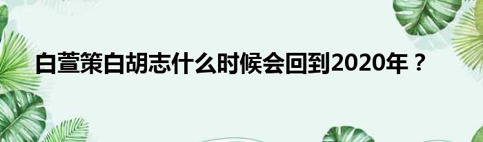 大家好,今天小六子来为大家解答以下的问题,关于白萱策白胡志什么时候会回到2020年?这个很多人还不知道,现在让我们一起来看看吧!