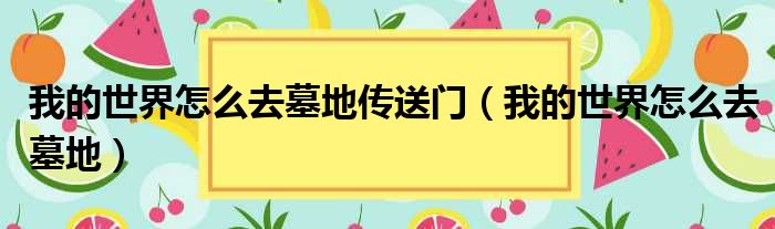 我的世界怎么去墓地传送门(我的世界怎么去墓地)