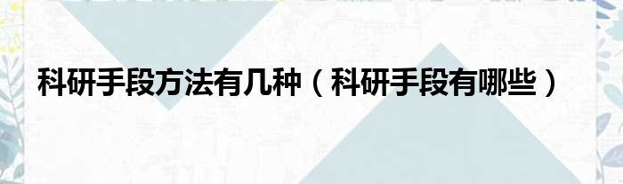 大家好,今天小六子来为大家解答以下的问题,关于科研手段方法有几种,科研手段有哪些这个很多人还不知道,现在让我们一起来看看吧!