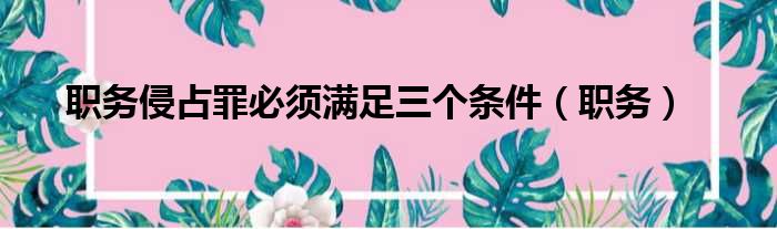 导读 大家好,今天小六子来为大家解答以下的问题,关于职务侵占罪必须满足三个条件,职务这个很多人还不知道,现在让我们一起来看看吧!1、职称包