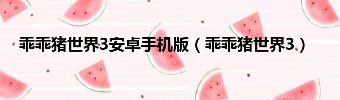 乖乖猪世界3安卓手机版(乖乖猪世界3)