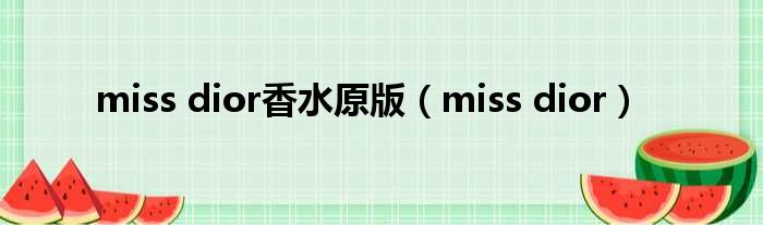 导读 大家好,今天小六子来为大家解答以下的问题,关于miss dior香水原版,miss dior这个很多人还不知道,现在让我们一起来看看吧!1、可以肯定