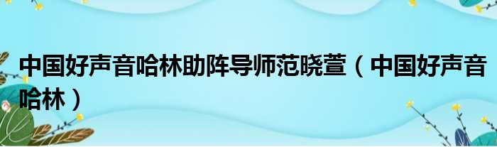 导读 大家好,今天小六子来为大家解答以下的问题,关于中国好声音哈林助阵导师范晓萱,中国好声音哈林这个很多人还不知道,现在让我们一起来看看
