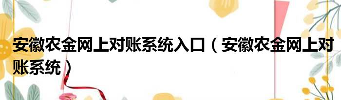 安徽农金网上对账系统入口(安徽农金网上对账系统)