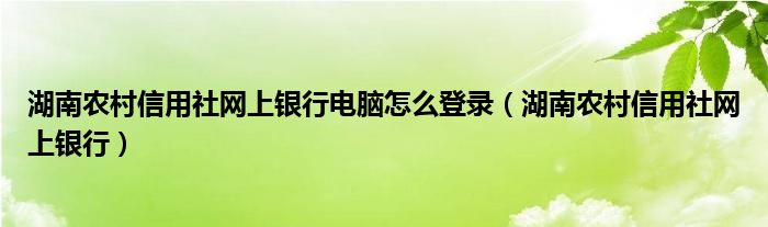 湖南农村信用社网上银行电脑怎么登录(湖南农村信用社网上银行)