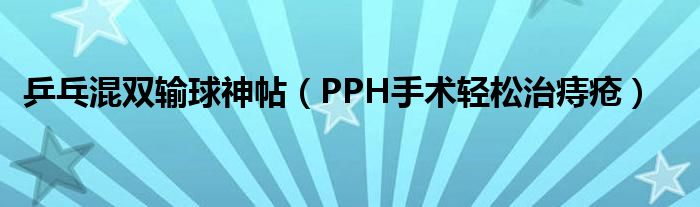 乒乓混双输球神帖(PPH手术轻松治痔疮)