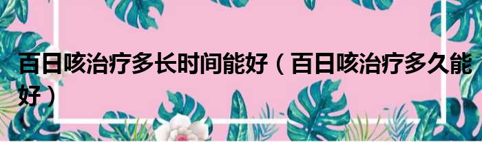 百日咳治疗多长时间能好(百日咳治疗多久能好)