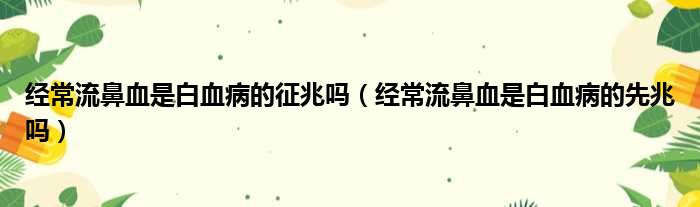 经常流鼻血是白血病的征兆吗(经常流鼻血是白血病的先兆吗)