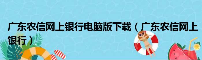 广东农信网上银行电脑版下载(广东农信网上银行)