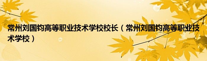 常州刘国钧高等职业技术学校校长(常州刘国钧高等职业技术学校)