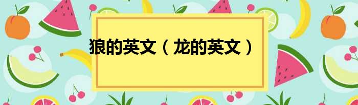 导读 大家好,今天小六子来为大家解答以下的问题,关于狼的英文,龙的英文这个很多人还不知道,现在让我们一起来看看吧!1、“龙”不应该翻译成