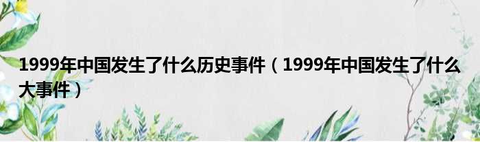 1999年中国发生了什么历史事件(1999年中国发生了什么大事件)