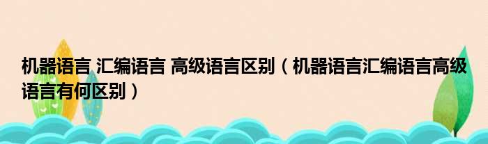 机器语言 汇编语言 高级语言区别(机器语言汇编语言高级语言有何区别)