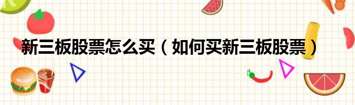 新三板股票怎么买(如何买新三板股票)