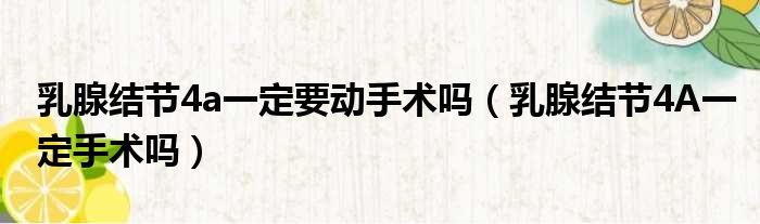 乳腺结节4a一定要动手术吗(乳腺结节4A一定手术吗)