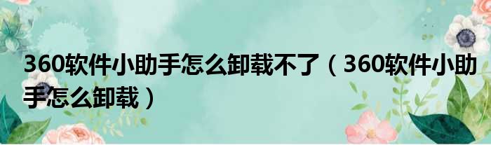 360软件小助手怎么卸载不了(360软件小助手怎么卸载)