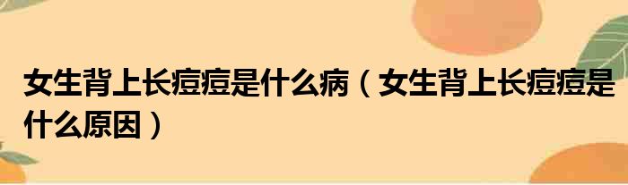 女生背上长痘痘是什么病(女生背上长痘痘是什么原因)