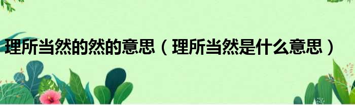 大家好,今天小六子来为大家解答以下的问题,关于理所当然的然的意思,理所当然是什么意思这个很多人还不知道,现在让我们一起来看看吧!