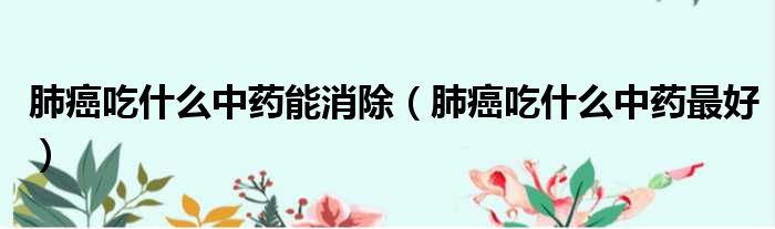 肺癌吃什么中药能消除(肺癌吃什么中药最好)