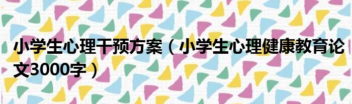小学生心理干预方案(小学生心理健康教育论文3000字)