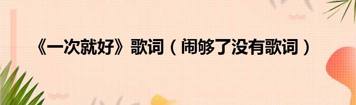 大家好,今天小六子来为大家解答以下的问题,关于《一次就好》歌词,闹够了没有歌词这个很多人还不知道,现在让我们一起来看看吧!
